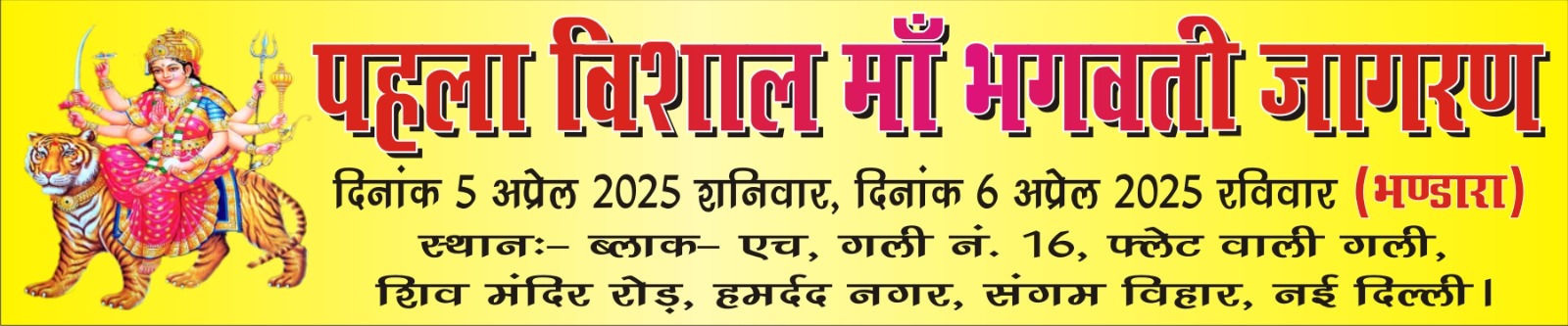 भगवती जागरण का भव्य आयोजन 5 अप्रैल 2025 को किया गया है। मां भगवती जागरण फ्लैट वाली