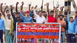आंदोलन में दर्जनों युवा किसान मजदूर सहित फरकिया मिशन के महासचिव दिनेश शाह ने भाग लिया।