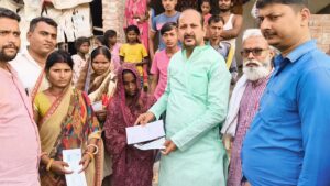स्थानीय विधायक ने अग्नि पीड़ित परिवारो को मुआवाजे के 12 हजार रूपये का चेक सौपा