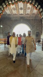 जे टी न्यूज, मधुबनी। वन्य पर्यावरण एवं जलवायु केंद्रीय मंत्री माननीय भूपेंद्र यादव आज एक दिवसीय दौरे पर कई मंत्रियों के साथ दरभंगा राजपरिवार के युवा सदस्य कुमार कपिलेश्वर सिंह के साथ राजनगर पर्यटक स्थल पहुंचे। उन्होंने राजनगर स्थित राज के कामख्या मंदिर के साथ काली मंदिर एवं दुर्गा मंदिर में पूजा अर्चना, आरती की। श्री यादव ने पत्रकारों से वार्ता करते हुए कहा कि मिथिलांचल में मंदिरों और शैक्षणिक कार्यों को आगे बढ़ाने में राज परिवार का बहुत ही अहम योगदान है। उन्होंने कहा कि यहां के विद्वानों और मनीषों के विषय में ताम्र और कई अभिलेखों में व्याप्त है और किसी भी महत्वपूर्ण चीजों का संरक्षण उनके पौराणिक इतिहास को ध्यान में रखकर किया जाता है। उन्होंने कहा कि मैं यहां आकर अपने आपको बहुत ही सौभाग्यशाली मानता हु कि ऐसे इतिहास को मुझे देखने का मौका मिला। मैं आशा करता हूं कि आनेवाले भविष्य में इस स्थल का स्वरूप बदलेगा। राजपरिवार के कुमार कपिलेश्वर सिंह ने कहा कि हम सभी के लिए यह गौरव की बात है कि इस स्थल पर भूपेंद्र जी का आगमन हुआ है जो यहां के अतीत को फिर से गौरवपूर्ण और सवारने की आश जगी है। कुमार ने कहा कि केंद्रीय और राज मंत्रियों को राज परिसर ने आने से स्थल की विशेषता बढ़ी है आगे भी मेरा इस ओर प्रयास जारी रहेगा। इस अवसर पर कुमार ने माननीय भूपेंद्र यादव जी को बुके और राजपरिवार के प्रतीक चिन्ह देकर सम्मानित किया। राजनगर परिसर भ्रमण के दौरान अशोक यादव, सांसद, मधुबनी, संजय सरावगी, भू संपदा मंत्री, बिहार सरकार, मुरारी मोहन झा, केवटी विधायक, देवेश कुमार, मिजोरम प्रभारी आदि भी पूरे परिसर का भ्रमण किया ।