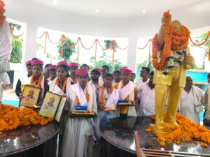 गांधी और बाबा साहब की प्रतिमा अनावरण कार्यक्रम सह मेधावी छात्र छात्राओं को सम्मानित किया गया