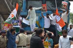 आगे बोलते हुए उन्होंने कहा कि ये सिर्फ बानगी भर है यदि मोदी सरकार अपनी ओछी हरकतों से बाज नहीं आएगी तो प्रदर्शन और भी ज्यादा उग्र होंगे। कांग्रेस सदैव सर्वजन हिताय, सर्वजन सुखाया की नीति में विश्वास करती है और इसी क्रम में दलितों, पिछड़ों, वंचितों की आवाज़ उठाना कांग्रेस नेतृत्व के लिए कुछ भी नया नहीं है और किसी भी सूरत में युवा कांग्रेस अपने नेता श्री राहुल गांधी जी के नेतृत्व में समान अवसर और सामाजिक न्याय की लड़ाई लड़ती रहेगी।
