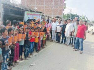 श्रमिक दिवस पर महादलित बस्ती में निःशुल्क लेखन और पाठ्य सामग्री वितरित