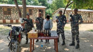 48वीं वाहिनी की “C कंपनी, जानकीनगर” के द्वारा नियमित गश्ती के दौरान भारत-नेपाल अंतरराष्ट्रीय सीमा पर शराब की तस्करी की एक कोशिश को विफल किया गया। यह कार्रवाई सीमा स्तम्भ संख्या 277/1 से लगभग 450 मीटर भारत की ओर भंडार चौक में की गई।