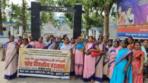 जे टी न्यूज, सुपौल : बिहार राज्य आशा कार्यकर्ता संघ गोपगुट ऐक्टू के राज्य व्यापी आह्वान पर सुपौल जिले के सदर प्रखंड के पीएचसी पर जिला संयोजिका ऊषा सिंहा की अध्यक्षता में (20- 24 मई)पांच दिवसीय हड़ताल का आयोजन दिन के 1बजे से किया गया।इस कार्यक्रम के माध्यम से आशा का 7सूत्री मांग पत्र सुपौल जिला पदाधिकारी के माध्यम से बिहार के मुख्यमंत्री ,स्वास्थ्य मंत्री और प्रधान सचिव को सौंपा गया।जो निम्नांकित है।
