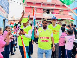 भारतीय सैनिकों के शौर्य गाथा के लिए सिविल डिफेंस एवं स्कूली बच्चों ने निकाला तिरंगा यात्रा