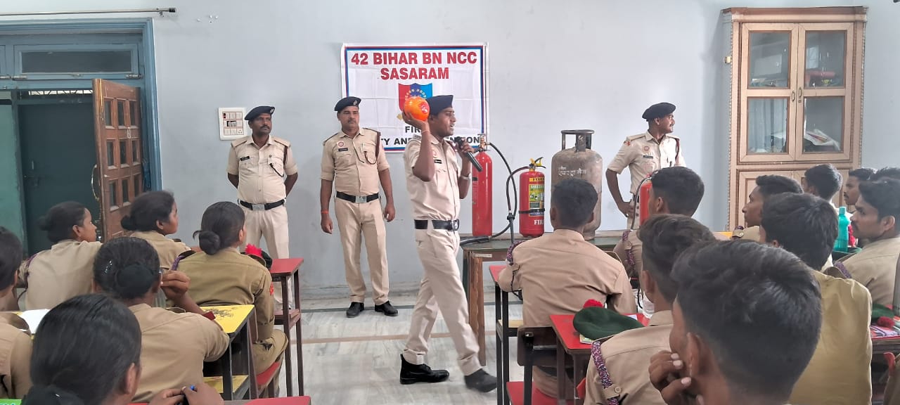 जे टी न्यूज, सासाराम (रोहतास) 42 बिहार बटालियन एनसीसी सासाराम के तत्वाधान में कैंप कमांडेंट कर्नल धर्मेंद्र सिंह मलिक के नेतृत्व में संत पॉल स्कूल सासाराम रोहतास में चल रहे संयुक्त वार्षिक शिविर के आज पांचवा दिन कैडेटों को भिन्न-भिन्न प्रकार का प्रशिक्षण दिया गया। जैसे कि ड्रिल, व्याख्यान, खेलकूद, नृत्य, गायन, पेंटिंग, सामान्य ज्ञान, ऑप्टिकल ट्रेनिंग के साथ-साथ फायरिंग की भी प्रशिक्षण कराई जा रही है। उसके बाद अग्निशामालय सासाराम से आए हुए प्रधान अग्निक विरेश कुमार, अoचाo आलोक रंजन, अग्निक प्रवीन कुमार, देवगिर्दा कुमार, राजेश कुमार द्वारा एनसीसी के कैडेटों को अग्नि सुरक्षा के बारे में विस्तार से जानकारी दी। उन्होंने गैस सिलेंडर में आग लगने पर बताया कि सबसे पहले सिलेंडर के रेगुलेटर को बंद करें और आग को बुझाने के लिए पानी का उपयोग न करें। इसके बजाय, एक गीला कपड़ा या कंबल आग को ढकने के लिए इस्तेमाल करें, या सिलेंडर को एक बाल्टी से ढक दें. यदि आग बड़ी है, तो तुरंत आग बुझाने वाले यंत्र का उपयोग करें। सुरक्षित स्थान पर चले जाएं और वहां जाकर लोगों की मदद ले और 101 या फिर 112 पर कॉल करे । इस कैंप को सुचारू रूप से चलने में लेफ्टिनेंट कर्नल अनूप कुमार, फर्स्ट ऑफिसर चंदन कुमार, विनय कुमार, सेकंड ऑफिसर रोहित कुमार, थर्ड ऑफिसर संतोष कुमार, सीनियर जीoसीoआईo बिमला कुमारी, जीoसीoआईo सुप्रिया रंजन सीoटीoओo ओम प्रकाश, प्रतिमा देवी, सूबेदार संजय कुमार सिंह, अवधेश कुमार, नायब सूबेदार परसाराम, मोहन कुमार बीएचएम रमन कुमार, एक्स सर्विस मैंन सूबेदार ओरनरी कप्तान नितेश कुमार, सूबेदार प्रमोद कुमार, बीसीए रौशन सिंह, अंडर ऑफिसर दुर्गेश कुमार, कैंप सीनियर रौशन कुमार, सोनम कुमारी के साथ साथ कुल 611 कैडेट प्रशिक्षण ले रहे।