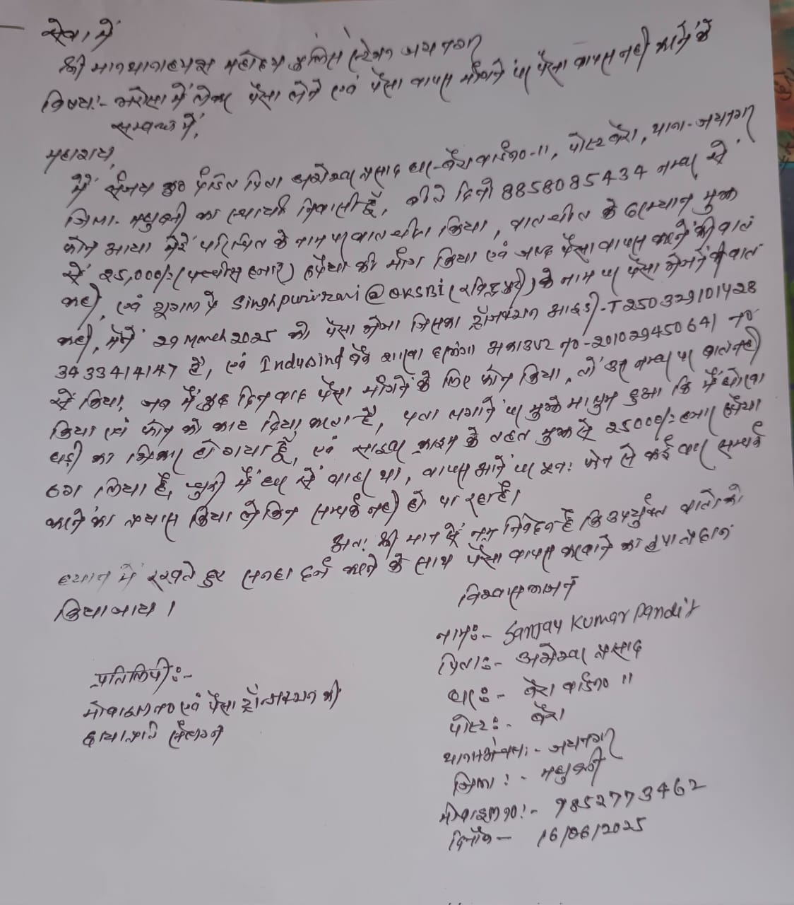 पत्रकार संजय कुमार पंडित के साथ साइबर फ्रॉड थाना में 25 हजार रुपये ठगी का आवेदन