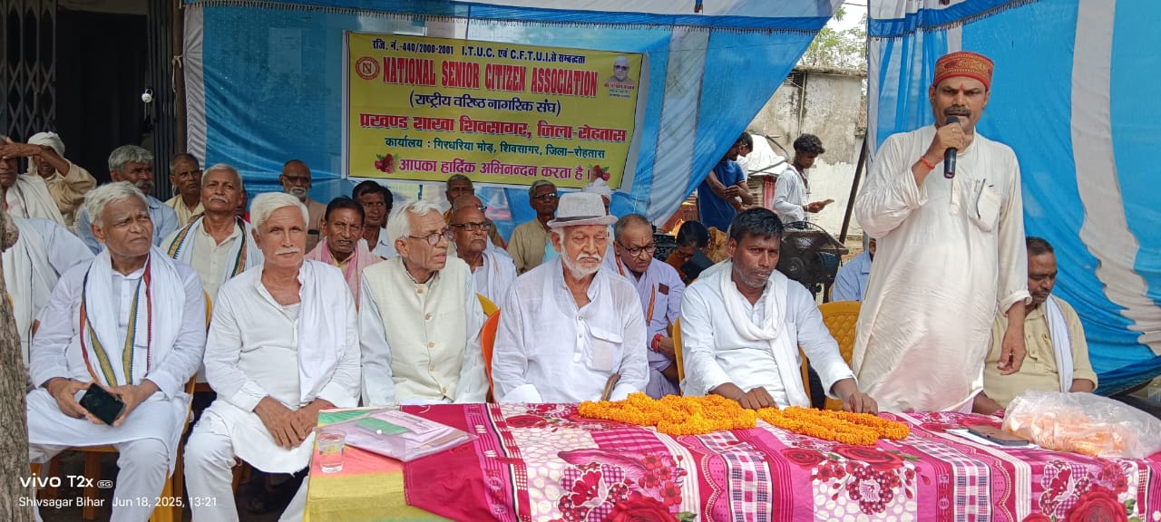 जे टी न्यूज, शिवसागर (रोहतास) नेशनल सीनियर सिटीजन एसोसिएशन के बैनर तले लंबित मांगों को लेकर वरिष्ठ नागरिकों ने वुधवार को प्रखण्ड कार्यालय पर धरना देकर अपनी मांगों के समर्थन में बीडीओ एवं सीओ को ज्ञापन सौपा। आंदोलन का नेतृत्व करते हुए संगठन के राष्ट्रीय महासचिव रामायण पांडेय “एलौन” ने कहा कि केंद्र एवं राज्य सरकारों की अनदेखी के कारण बुढ़ापे में हमे आराम की जगह आंदोलन करना पड़ रहा है लेकिन हम भी पीछे नही हटेंगें।कहा की वृद्धजन, विधवा व दिव्यांग पेंशन की राशि बढ़वाने के लिए हम सभी आवश्यक प्रयास कर रहे है। अगर बात नही बनी तो सितम्बर में मुख्यमंत्री का घेराव किया जाएगा।सुविधाओं में लगातार की जा रही कटौती से नाराज बुजुर्गों ने रोषपूर्ण प्रदर्शन कर सरकार पर जमकर अपनी भड़ास निकली। आंदोलन में बड़ी संख्या में महिला एवं पुरूष वरिष्ठ नागरिकों ने भाग लिया। संघ की मुख्य मांगो में वरिष्ठ नागरिकों की बन्द की गई रेल किराया छुट को फिर से बहाल कराने, वृद्धापेंशन की राशि चार सौ रुपये से बढ़ाकर दो हजार करवाने, वृद्धापेंशन से छूटे हुए बुजुर्गों का नाम जोड़वाने तथा अंगूठा सत्यापन के लिए गांवों में कैम्प लगाने, जमीन सर्वे, दाखिल खारिज सहित अन्य कार्यों के लिए विशेष सुविधा उपलब्ध कराने,