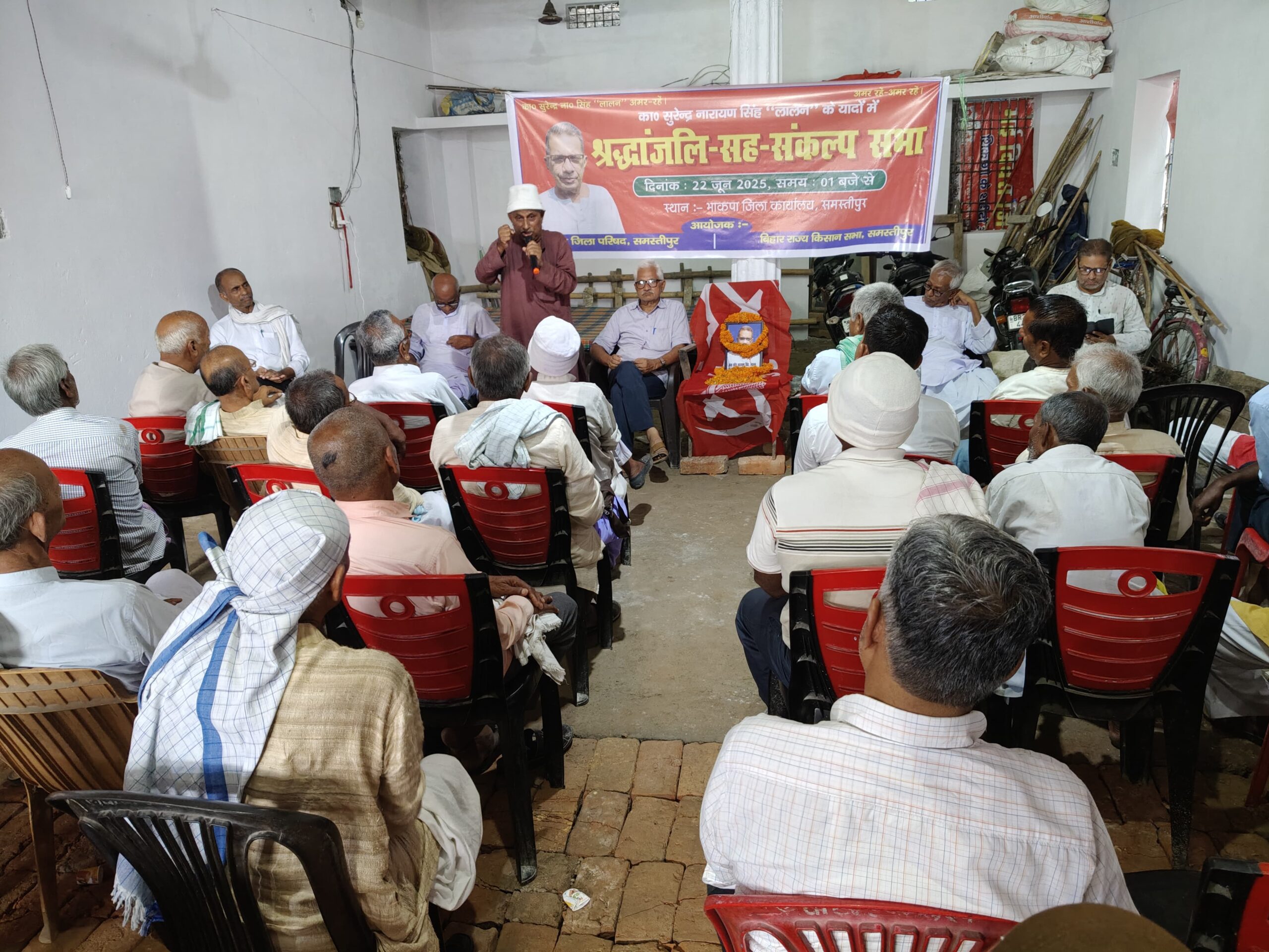 जे टी न्यूज, समस्तीपुर:आज दिनांक 22 जून 2025 को भारतीय कम्युनिस्ट पार्टी जिला कार्यालय बंगाली टोल में कामरेड सुरेंद्र नारायण सिंह “लालन” का श्रद्धांजलि सह संकल्प सभा एटक के जिला अध्यक्ष सुधीर कुमार देव की अध्यक्षता में हुई।
