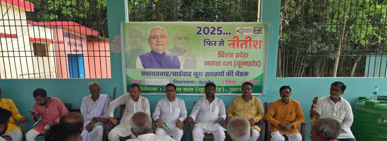 जदयू द्वारा बेलदौर विधानसभा अंतर्गत 21 जून से 25 जून तक पंचायतवार बूथ स्तरीय कमेटी की बैठक का आयोजन प्रारंभ किया गया है। यह बैठक जदयू जिलाध्यक्ष बबलू कुमार मंडल एवं बेलदौर विधानसभा प्रभारी सोहन झा के देखरेख में आयोजित की जा रही है।शनिवार को आयोजित पहले दिन की बैठक सकरोहर एवं कुरबन पंचायतों में संपन्न हुई, जिसमें दोनों नेताओं ने बूथ स्तरीय कमेटियों की समीक्षा की। अपने संबोधन में जिलाध्यक्ष बबलू मंडल ने कहा कि आगामी विधानसभा चुनाव में पार्टी का परचम तभी लहराएगा जब बूथ स्तर पर संगठन मजबूत रहेगा। उन्होंने कार्यकर्ताओं से समर्पण और साहस के साथ कार्य करने का आह्वान किया। बैठक के दौरान बबलू मंडल ने मुख्यमंत्री नीतीश कुमार के नेतृत्व में बिहार में हुए विकास कार्यों की चर्चा करते हुए कहा कि आज बिहार की पहचान देश और दुनिया में सुशासन की मिसाल के रूप में हो रही है। उन्होंने बताया कि मुख्यमंत्री नीतीश कुमार ने सामाजिक सुरक्षा पेंशन योजना के तहत वृद्ध, विधवा एवं दिव्यांग पेंशनधारियों की मासिक पेंशन ₹400 से बढ़ाकर ₹1100 कर दी है। यह बढ़ी हुई राशि आगामी जुलाई महीने से लागू होगी और प्रत्येक माह की 10 तारीख को लाभार्थियों के खाते में भेजी जाएगी।उन्होंने इसे ऐतिहासिक निर्णय बताते हुए कहा कि अब वृद्धजन, विधवा महिलाएं और दिव्यांगजन अपनी आवश्यकताओं जैसे दूध, दवा आदि की पूर्ति सरलता से कर सकेंगे। बताते चलें कि शकरोहर पंचायत अध्यक्ष राजकिशोर सिंह व कुर्बन पंचायत अध्यक्ष बेचन सिंह ने अपने अपने पंचायत में बैठक की अध्यक्षता की।इस अवसर पर जदयू जिला उपाध्यक्ष उमेश सिंह पटेल,नूतन सिंह पटेल,जिला महासचिव अनुज कुमार शर्मा, बेलदौर प्रखंड अध्यक्ष संजय सिंह कुशवाहा सहित दर्जनों पदाधिकारी एवं पार्टी कार्यकर्ता उपस्थित थे।