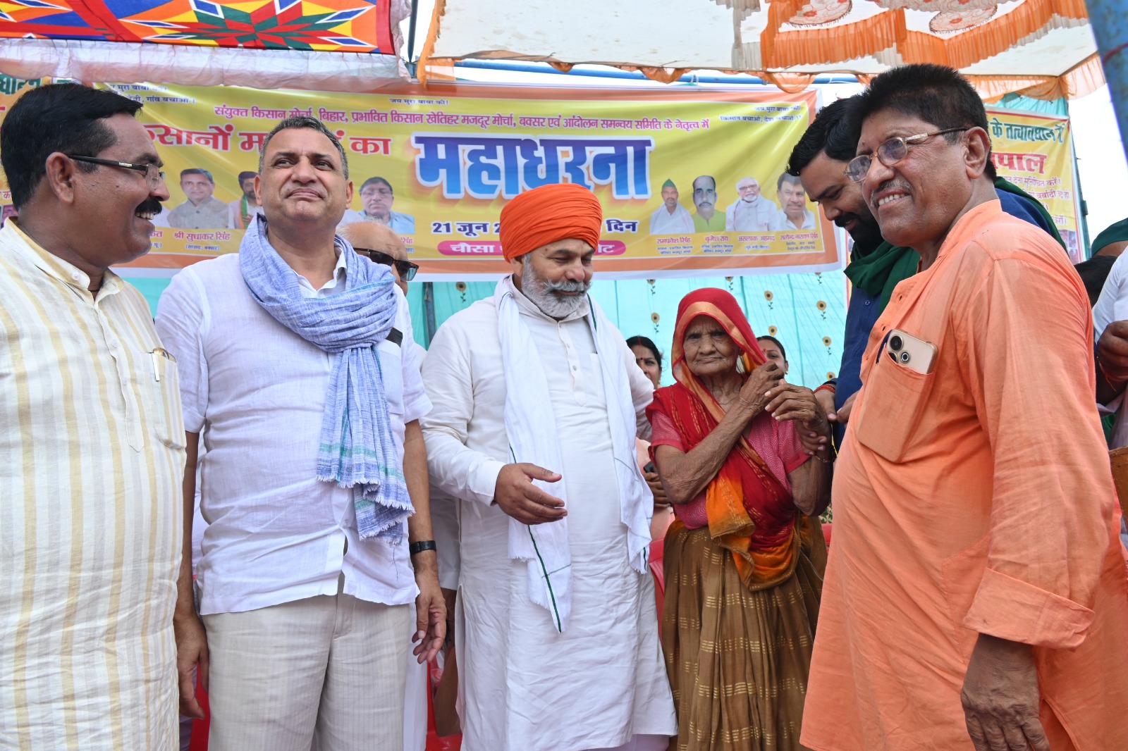 जे टी न्यूज, बक्सर: किसान बचाओ, देश बचाओ! की गगन भेदी नारों से चौसा थर्मल का मुख्य गेट क्षेत्र गुंजायमान हो गया। हजारों हजार किसानों का विशाल महापंचायत की शुरुआत राष्ट्रीय किसान नेता श्री राकेश टिकैत ने चौसा किसान आंदोलन की वीरांगना तेतरी देवी को सम्मानित कर धरना की शुरूआत किया। सर्वप्रथम अतिथियों में भारतीय किसान यूनियन के राष्ट्रीय प्रवक्ता राकेश टिकैत,स्थानीय सांसद श्री सुधाकर सिंह, हल्ला बोल के राष्ट्रीय अध्यक्ष अनुपम जी,सेंट्रल कोऑपरेटिव बैंक के अध्यक्ष सत्येंद्र प्रसाद सिंह,बिहार सरकार के पूर्व मंत्री अखलाक अहमद, किसान नेता दिनेश कुमार और अशोक प्रसाद सिंह,हल्ला बोल के महासचिव प्रशांत कमल सहित अन्य अतिथियों को फूलमाला एवं अंग वस्त्र से सम्मानित किया गया। इस अवसर पर आयोजित सभा को संबोधित करते हुए भारतीय किसान यूनियन के राष्ट्रीय प्रवक्ता राकेश टिकैत ने किसानों का आह्वान करते हुए कहा कि किसान साल भर किसान रहते है, मगर वोट के समय जातियों में बंट जाते है। किसान अपने को भूल जाते हैं कि किसान है, तब तक किसानों को जिंदगी में खुशहाली नहीं आएगी। उन्होंने कहा किसानों को डरने की जरूरत नहीं है। आप संगठित होकर संघर्ष करो पूरे देश के किसान आपके साथ है। बिहार के बच्चे दिल्ली में अपने को बिहारी कहना पसंद नहीं करते।अपने बच्चों को अपनी मिट्टी से जोड़ो। केंद्र सरकार जी एम बीज के रूप में जहर लाकर हमारे बीच में परोसना चाहती है। उसके खिलाफ पूरे देश में सड़क से संसद तक और न्यायालय तक हम लड़ाई लड़ेंगे। इस अवसर पर स्थानीय सांसद सुधाकर सिंह ने कहा कि जब मैं सांसद नहीं था,उस समय 3000 एकड़ में चौसा थर्मल को बनाने की बात थी। हमने लड़कर उस फालतू जमीन को कारखाना के नाम पर किसानों से छीनने नहीं दिया। उस समय लड़ कर 1100 एकड़ जमीन अधिग्रहित करने नहीं दिया। सांसद बनने के बाद एक साल के दरमियान कई सहूलियत दिलाई है और बाकी जो सवाल है वह भी आर&आर कमिटी के अंदर संघर्ष कर उसे पूरा करेंगे। उन्होंने कहा डबल इंजन की सरकार विकास के नाम पर रेल और सड़क की बात करती है। यह रेल और सड़क बिहार के विकास के लिए नहीं बल्कि बिहार से सस्ते श्रम और कच्चा माल मुंबई और गुजरात ले जाकर ज्यादा से ज्यादा मुनाफा कमाने और फिर अपने उत्पाद को बिहार और बंगाल के बाजारों में बेचकर मुनाफा कमाने के लिए रेल एवं रोड का विकास किया जा रहा है।
