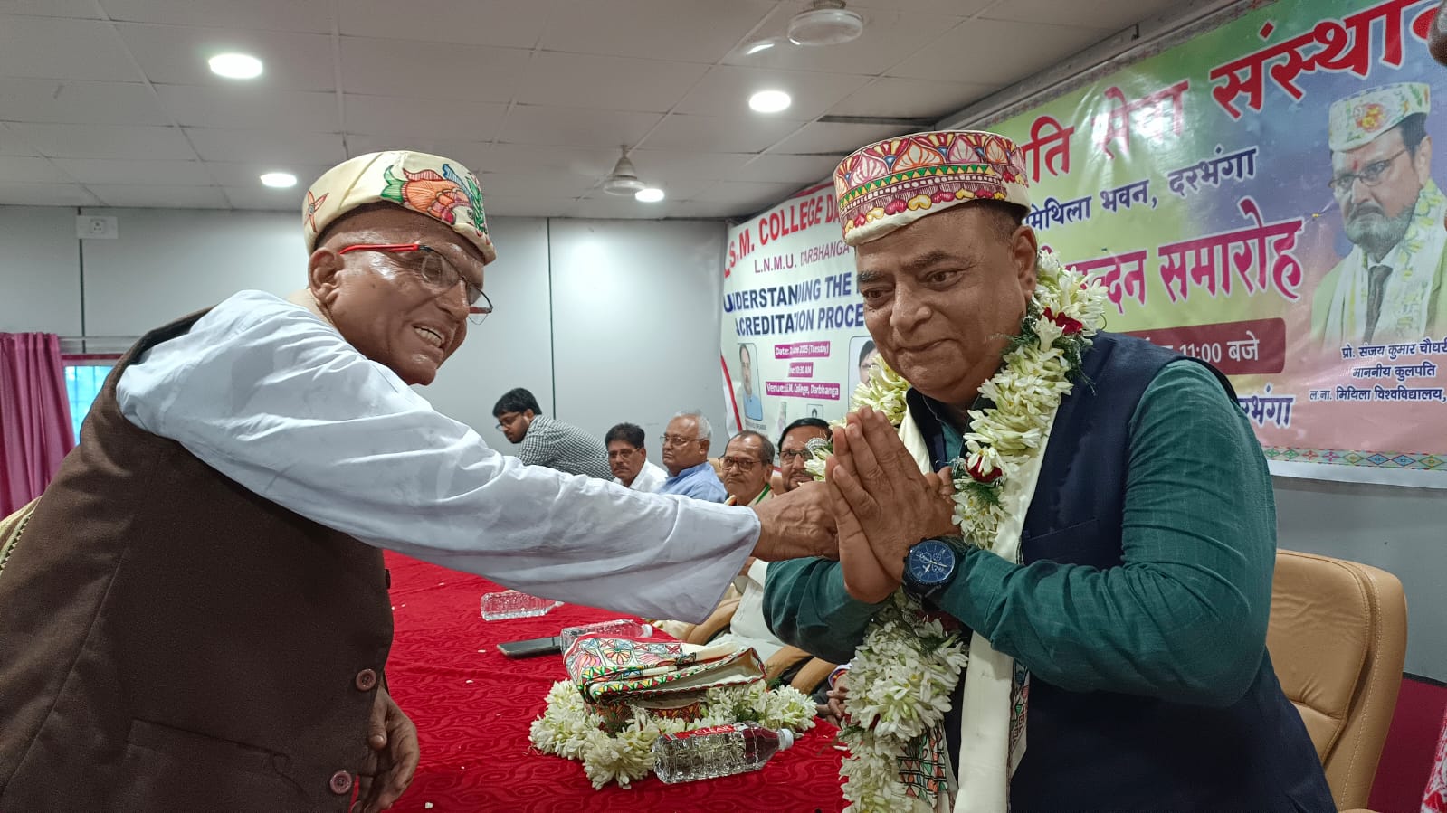 अभिनंदन समारोह में प्रो रमेश झा, अरुण सिंह, गोपाल चौधरी, डा रामसुभग चौधरी, विनोद कुमार झा, रंगनाथ ठाकुर, उत्सव पराशर, डा सुधीर कुमार मिश्र, डा चंद्रनाथ मिश्र, डा गणेश कांत झा, दुर्गानंद झा, हरिकिशोर चौधरी, पवन कुमार ठाकुर, डा ज्वाला प्रसाद चौधरी, सुबोध यादव, आशीष चौधरी, पुरुषोत्तम वत्स आदि समेत बड़ी संख्या में गणमान्य लोग उपस्थित हुए।