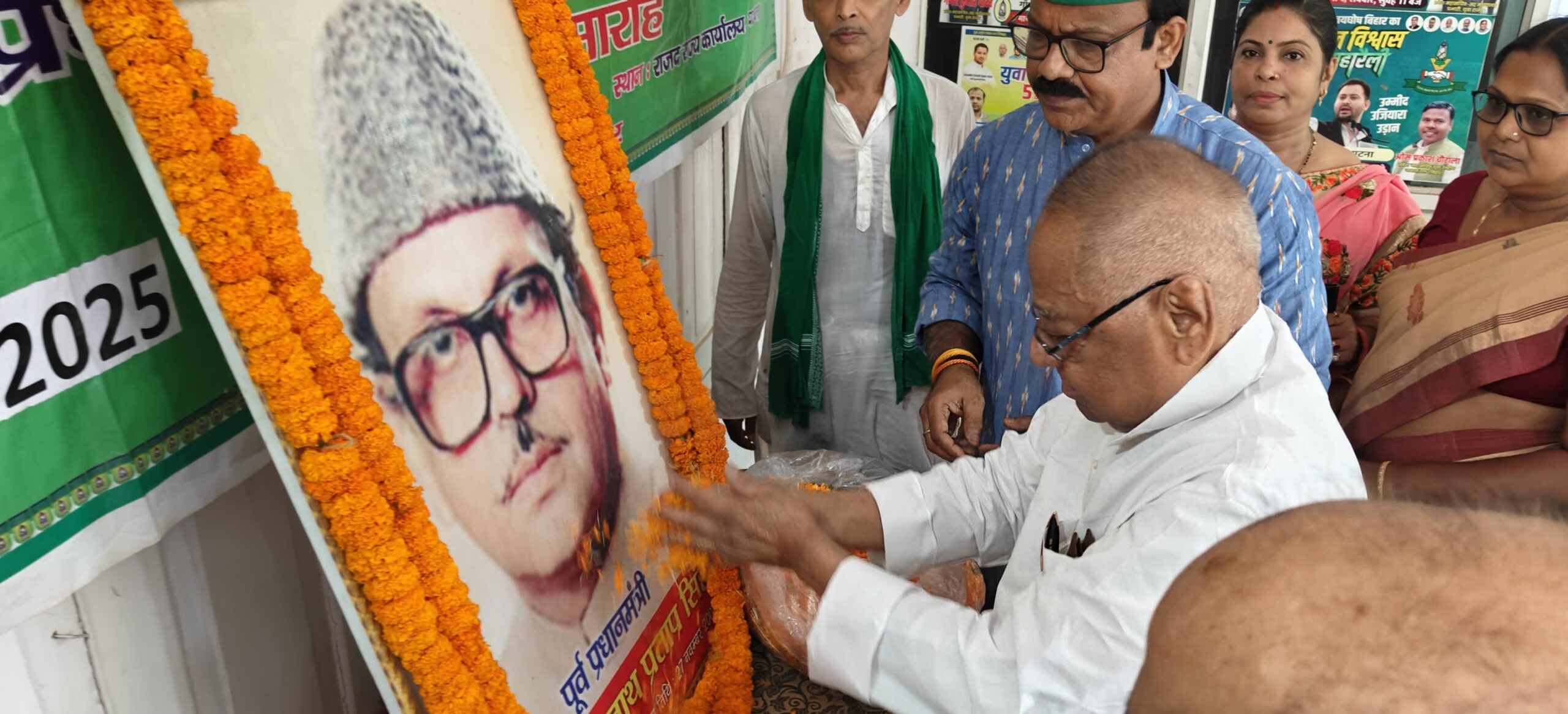 आज राष्ट्रीय जनता दल के राज्य कार्यालय में पूर्व प्रधानमंत्री स्व0 विश्वनाथ प्रताप सिंह की जयंती मा0 प्रदेश अध्यक्ष श्री मंगनी लाल मंडल जी की अध्यक्षता में नेता प्रतिपक्ष श्री तेजस्वी प्रसाद यादव की उपस्थिति में मनायी गई। इस अवसर पर नेताओं एवं कार्यकर्ताओं ने स्व0 विश्वनाथ प्रताप सिंह के तैल चित्र पर माल्यार्पण कर श्रद्धांजलि अर्पित की गई।