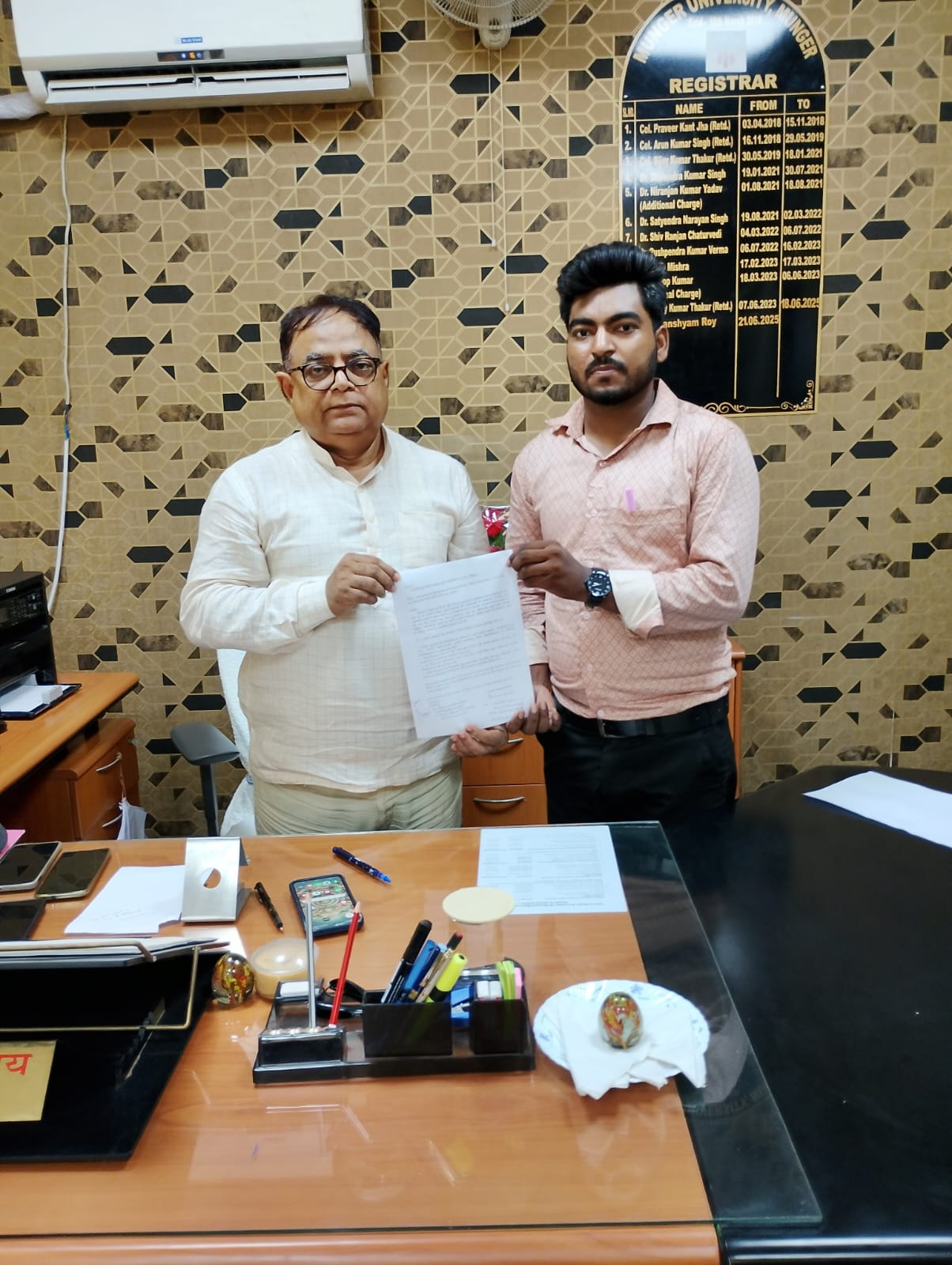 छात्र नेता प्रिंस कुमार ने छात्रों की समस्याओं को लेकर कुलसचिव को सौंपा मांग पत्र