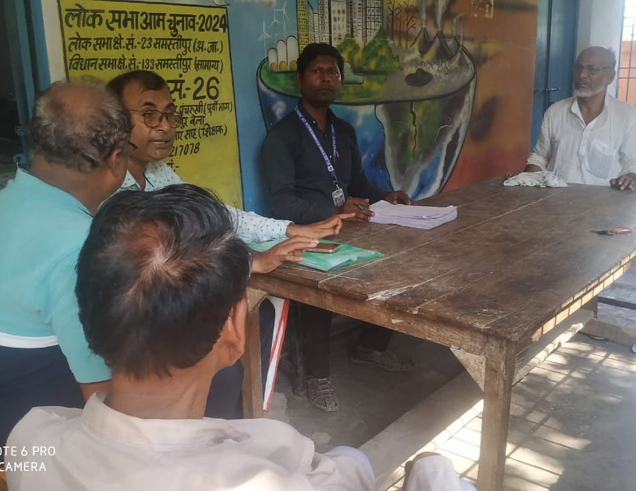जे टी न्यूज, समस्तीपुर: भारत निर्वाचन आयोग के आदेश के आलोक में प्रत्येक विधानसभा क्षेत्र अंतर्गत मतदान केंद्र के मतदाता पुनरीक्षण कार्य के तहत आज पर्यवेक्षक राजेश कुमार की अध्यक्षता में रूपनारायणपुर बेला पंचायत के बूथ संख्या 26,मध्य विद्यालय बेला पंचरुखी पूर्वी भाग पर बी एल ओ, बी एल ए व मतदाताओं की समीक्षात्मक बैठक हुई। जिसमें मतदाता सूची में मृत्यु ,अस्थाई रूप से स्थानांतरण, दोहरी प्रविष्टि को हटाने पर गहन विचार विमर्श किया गया। इस अवसर पर बी एल ओ विमल कुमार साह ने कहा कि प्रखंड स्तर से प्राप्त गणना प्रपत्र प्रारूप का संधारण कर ऑनलाइन बीएलओ एप पर अपलोड किया जा रहा है,इसके लिए प्रत्येक मतदाता के घर जाकर एक प्रमाण पत्र व हस्ताक्षर लिया गया है। उन्होंने कहा कि इस बूथ पर कुल 1346 मतदाताओं में मृत 65 ,स्थानांतरित 63 और दोहरी प्रविष्टि वाले 49 हैं।मौके पर वार्ड संख्या चार और पांच के वार्ड सदस्य क्रमशः राजीव कुमार और विनोद कुमार पासवान,बी एल ए कमलेश साह,नसीम एकता, मो. हारुन, बबलू पासवान, नथुनी साह, अरविंद कुमार,संजय पासवान,मो.जावेद,फिरदौस आलम आदि ने अपना बहुमूल्य विचार रखा ।प्रधानाध्यापक मुकेश कुमार ने विद्यालय पर सौहार्दपूर्ण एवं आनंददाई वातावरण में बैठक संपन्न होने पर प्रसन्नता जाहिर की।
