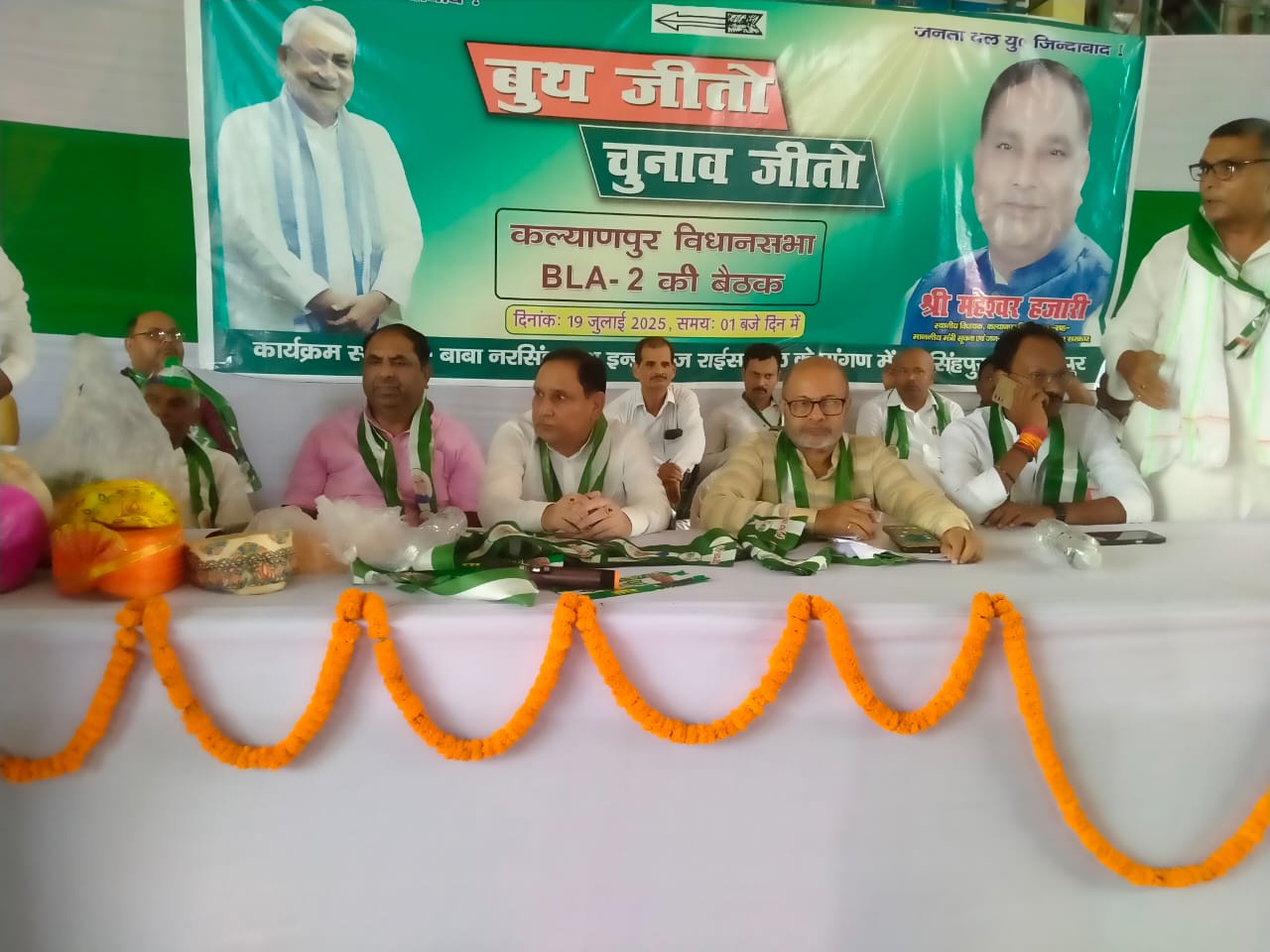 बैठक में विशेष गहन पुनरीक्षण के विषय में विस्तार से चर्चा की गई एवं सभी बीएलए को पुनरीक्षण के विषय में आम जनमानस में प्रचार प्रसार करने एवं भ्रांतियों को दूर करने हेतु अनुरोध किया गया ।मौके पर जिला अध्यक्ष जदयू श्री दुर्गेश कुमार राय सहित विभिन्न जनप्रतिनिधि गण एवं बी एल ए मौजूद रहे।