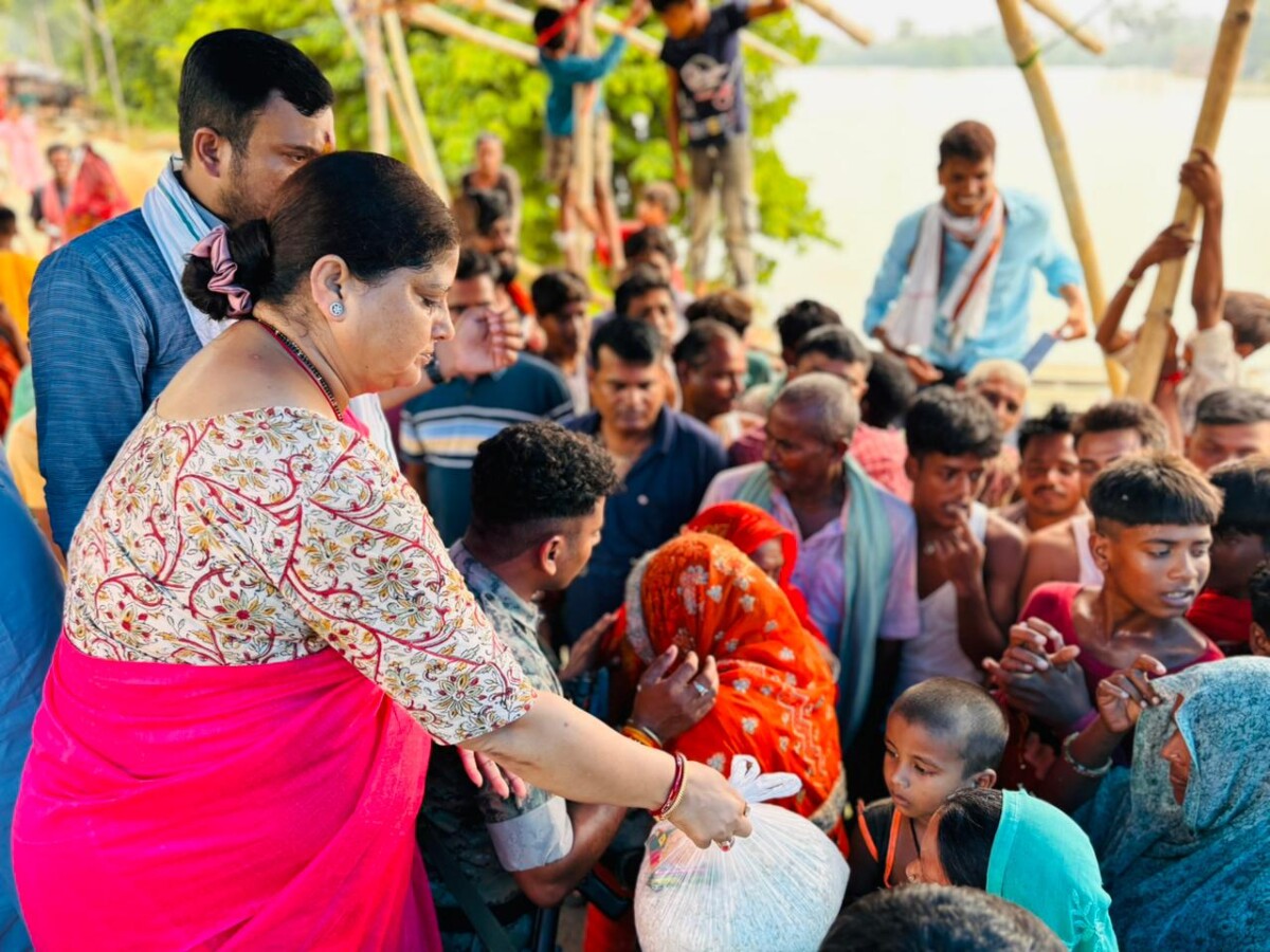 बाढ़ पीड़ितों के बीच जिप अध्यक्ष ने की राहत सामग्री वितरित