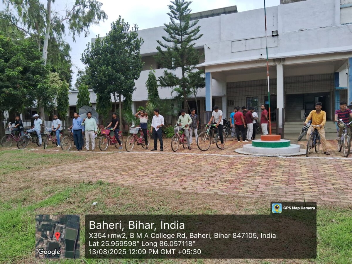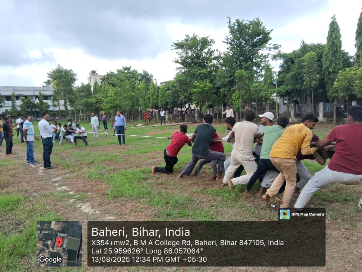 बहेरी /दरभंगा::स्वतंत्रता दिवस के पावन अवसर पर बिलट महथा आदर्श महाविद्यालय, बहेड़ी में देशभक्ति और उत्साह के साथ ध्वजारोहण तथा पुरस्कार वितरण समारोह संपन्न हुआ। विगत मंगलवार और बुधवार को आयोजित मेहंदी, निबंध, स्लो साइकिल रेस और रस्साकसी जैसी विविध प्रतियोगिताओं में सफल प्रतिभागियों को पुरस्कृत किया गया। प्रधानाचार्य प्रो.(डॉ.) कुशेश्वर यादव के द्वारा राष्ट्रीय ध्वजारोहण के बाद उनकी अध्यक्षता में सम्मान समारोह का भव्य आयोजन हुआ।