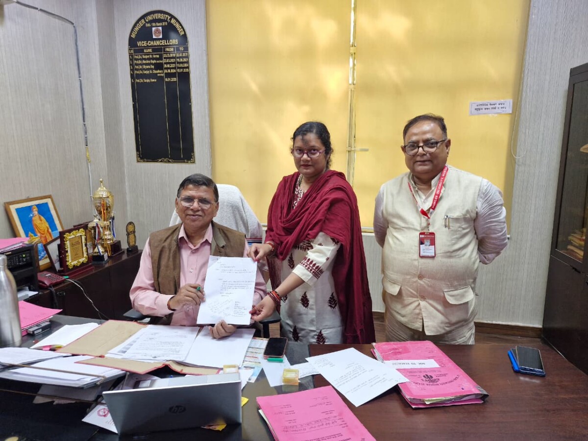 जे टी न्यूज, मुंगेर: आरडी एंड डीजे कॉलेज, मुंगेर में पदस्थापित हिंदी विभाग की सहायक प्राध्यापिका डॉ. प्रियंबदा शर्मा ने मंगलवार को कुलपति माननीय प्रोफेसर संजय कुमार के समक्ष कुलसचिव डॉ. घनश्याम राय की उपस्थिति में विश्वविद्यालय मुख्यालय में स्थापना प्रभारी के रूप में अपना पदभार ग्रहण किया।