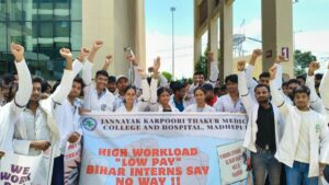 विरोध प्रदर्शन किया। इस दौरान एक घंटा जेएनकेटी के सभी इंटर्न चिकित्सक ने बैनर के साथ जेएनकेटी में प्रभात फेरी निकाली और विभाग से जुनियर चिकित्सकों के भी इंटर्नसीप की राशि बढ़ाने की मांग की। इस बाबत आनंद प्रकाश ने बताया की बिहार में जुनियर चिकित्सकों का जिस तरह का वर्क लोड है। उस हिसाब से पैसा नही मिलता है। इस तरह हमलोगों की अनदेखी की गई तो मंगलवार से हमलोग ओपीडी बंद कर देंगे। जमान मुशर्रफ ने बताया की बिहार में सभी विभागों की राशि में बढ़ोतरी हो रही है। लेकिन 8 घंटा की जगह 16- 16 घंटा का वर्क लोड होने के बाद भी लगभग 600 रूपया रोज के हिसाब से मिलता है। जबकि बगल के राज्यों में 40 हजार रुपया महीना मिलता है। तीन साल से जो राशि रिभाईज होती थी। वह भी नही हुआ है।