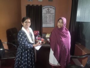 बाल विकास पदाधिकारी रंजना कुमारी को गुलदस्ता देकर विदाई की गई