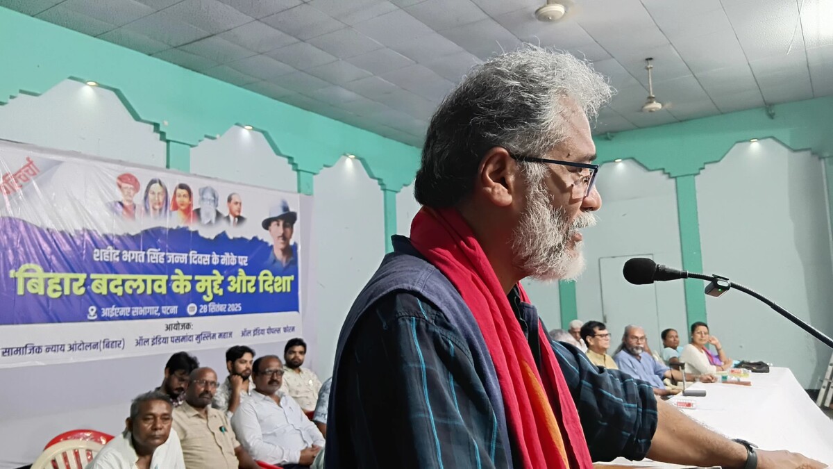 राजधानी पटना के गांधी मैदान स्थित शहीद भगत सिंह प्रतिमा पर माल्यार्पण करने के बाद आईएमए सभागार में आयोजित परिचर्चा “बिहार बदलाव के मुद्दे और दिशा” को संबोधित करते हुए भाकपा(माले) महासचिव का. दीपंकर भट्टाचार्य ने कहा कि आज देश में मुद्दों पर आवाज़ उठाने वालों को जेलों में ठूँसा जा रहा है। उन्होंने लद्दाख के आंदोलन से जुड़े सोनम वांगचुक का उदाहरण देते हुए कहा कि उन्हें छठी अनुसूची और अलग राज्य की माँग करने के कारण एनएसए के तहत जेल भेज दिया गया है। उत्तराखंड में पेपर लीक के खिलाफ नारा देने वाले छात्रों पर कार्रवाई हुई और बिहार में संविदा कर्मियों तथा बर्खास्त कर्मचारियों की स्थायी नौकरी की माँग को दबाने के लिए भाजपा कार्यालय के सामने बेरहमी से लाठीचार्ज किया गया।