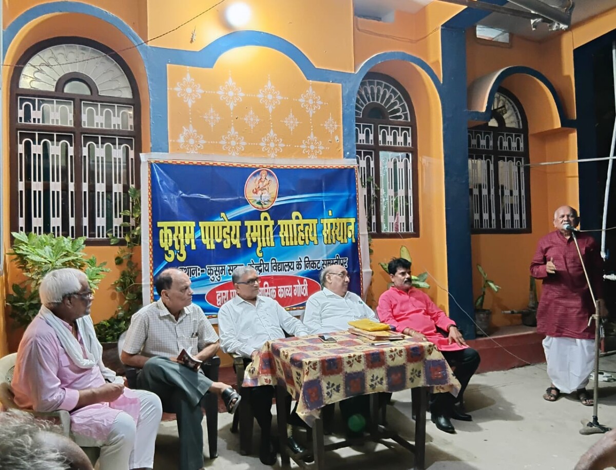जे टी न्यूज, समस्तीपुर: स्थानीय केंद्रीय विद्यालय पथ स्थित कुसुम पांडे स्मृति साहित्य संस्थान में कविवर हरिनंदन साह की अध्यक्षता में मासिक काव्य संध्या का आयोजन किया गया। जिसका सफल संचालन गजलकार प्रवीण कुमार चुन्नू ने किया। काव्य गोष्ठी की शुरुआत डॉ.रामसूरत प्रियदर्शी के सरस्वती वंदना एवं देवी वंदना गायन से की गई। इस अवसर पर कवि राम लखन यादव, डॉ गंगा प्रसाद आजाद समतलपुरी, नरेंद्र कुमार सिंह त्यागी, राम सुंदर सिंह, कुमार अमरेश, अमरनाथ कुमार, दीपक कुमार श्रीवास्तव,परमानंद लाभ, रंजना लता,यशवंत कुमार, प्रधानाध्यापक मुकेश कुमार,मो.जावेद ने अपनी अपनी रचनाओं को सुना कर शमां बांधा।जबकि भुवनेश्वर मिश्र ने सस्वर गीत गाकर सबों को मंत्र मुग्ध कर दिया। वहीं रामाश्रय राय राजेश ने अपनी शैली में राजनीति पर व्यंग कर काफी तालियां बटोरी। हास्य कवि विष्णु कुमार केडिया ने अपने परंपरागत लहजे में कविता पाठ कर सबको लोटपोट कर दिया। आयोजक कवि शिवेंद्र कुमार पांडे व राजकुमार चौधरी ने हिंदी दिवस की प्रासंगिकता पर अपनी रचना को सुना कर एक नए वातावरण का सृजन किया और प्रवीण कुमार चुन्नू ने देवी मां को समर्पित गजल गाकर माहौल को भक्तिमय कर दिया।अंत में अध्यक्ष हरिनंदन साह ने अपनी सुरीली आवाज में “अब पीपल में छांव कहां है, पहले जैसा गांव कहां है” गाकर कार्यक्रम समाप्ति की घोषणा की।