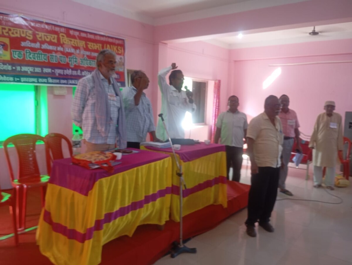 जे टी न्यूज, झारखंड: झारखंड राज्य किसान सभा का दो दिवसीय राज्यस्तरीय अधिवेशन सुफल महतो एवं गोपीन सोरेन की अध्यक्षता में लुमाई हाल दूमका में सम्पन्न हुई ,किसान मुद्दों एम् एस पी की कानूनी गारंटी, घोषित एम् एस पी के आधार पर किसानों के धान खरीदी की गारंटी,कर्ज माफी,जबरन जमीन अधिग्रहण, हाथियों का आतंक, पलायन, विस्थापन, वनपटटा, स्मार्ट मीटर ,जल, जंगल, जमीन व खनिज संपदा की रक्षा, मनरेगा में 200 दिन काम 600 रूपए मज़दूरी आदि मुद्दों पर 8 जनवरी 2026 को रांची में राज्यस्तरीय किसान रैली कर मुख्यमंत्री को ज्ञापन सौंपने का निर्णय लिया गया । 15 दिसम्बर को छोटानागपुर स्तरीय किसान कन्वेंशन एवं 16 दिसम्बर को युवा किसानो का राज्यस्तरीय अधिवेशन रांची में करने तथा अक्टूबर तक किसान मुद्दों पर प्रखंडों में प्रदर्शन करने, एम् एस पी के दर से सभी किसानों के धान खरीद की गारंटी के मांग को लेकर 5 दिसम्बर से 5 जनवरी तक धान क्रय केन्द्रों के समक्ष डेरा डालो आन्दोलन चलाने का निर्णय लिया गया। साथ ही अक्टूबर तक गांव सम्मेलन,15 नवंबर तक पंचायत एवं अंचल किसान सम्मेलन , नवम्बर – दिसम्बर में जिला सम्मेलन तथा 11-12 फरवरी 2026 को राज्य सम्मेलन नगड़ी,( रांची ) में करने का निर्णय लिया गया। उक्त आन्दोलन के लिए 15 अक्टूबर से 5 जनवरी तक हर गांव में प्रचार अभियान चलाने का भी निर्णय लिया गया।