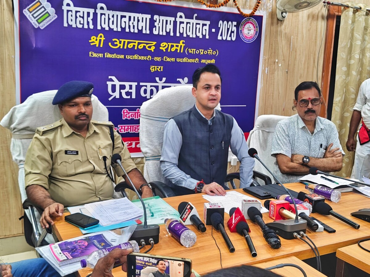 बिहार विधानसभा आम निर्वाचन 2025 के अभ्यर्थिता वापसी के अवसर पर गुरुवार को समाहरणालय स्थित सभाकक्ष में जिला निर्वाचन पदाधिकारी, मधुबनी, आनंद शर्मा एवं पुलिस अधीक्षक, योगेंद्र कुमार के द्वारा संयुक्त रूप से प्रेस सम्मेलन को संबोधित किया गया।*
